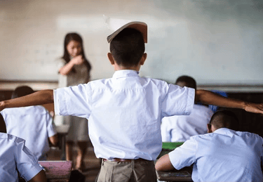 In Japan, it is not uncommon to see young children sleeping in classrooms, heads resting on desks, bodies slumped into rest without reprimand. Fatigue is not moralized; it is understood as a signal. In parts of China, students engage in synchronized movements, prolonged standing, posture correction, and regimented stillness—practices often framed as discipline, but functioning as collective regulation. Elsewhere in the world, children were made to stand at the back of the room, kneel, hold books with outstretched arms, write lines endlessly, or sit isolated in “time-out” corners.